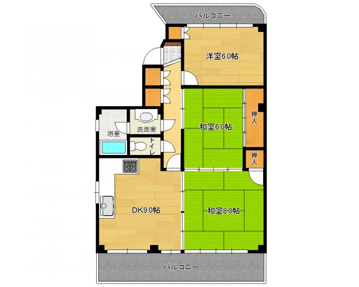 | 間取り詳細 | 和8.0帖 和6.0帖 洋6.0帖 DK9.0帖 |