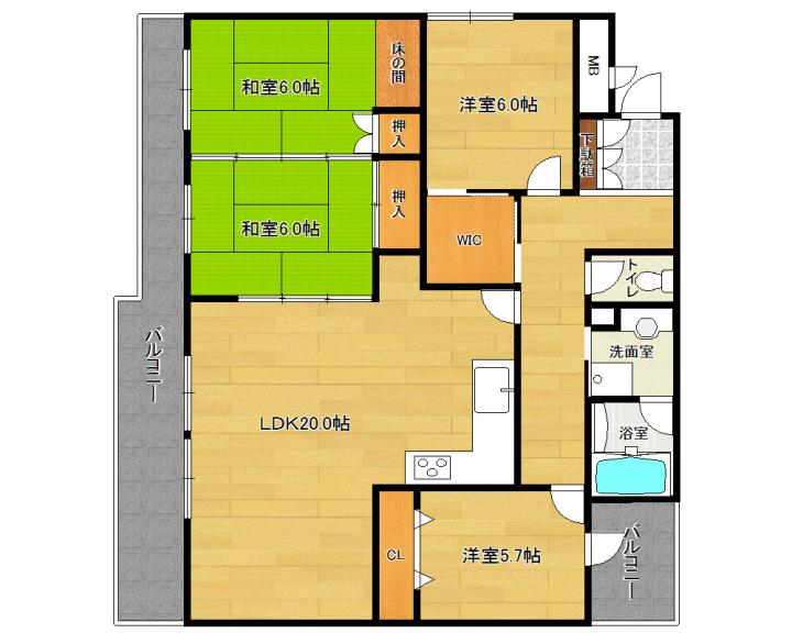 | 間取り詳細 | 和6.0帖 和6.0帖 洋6.0帖 洋5.7帖 LDK20.0帖 |