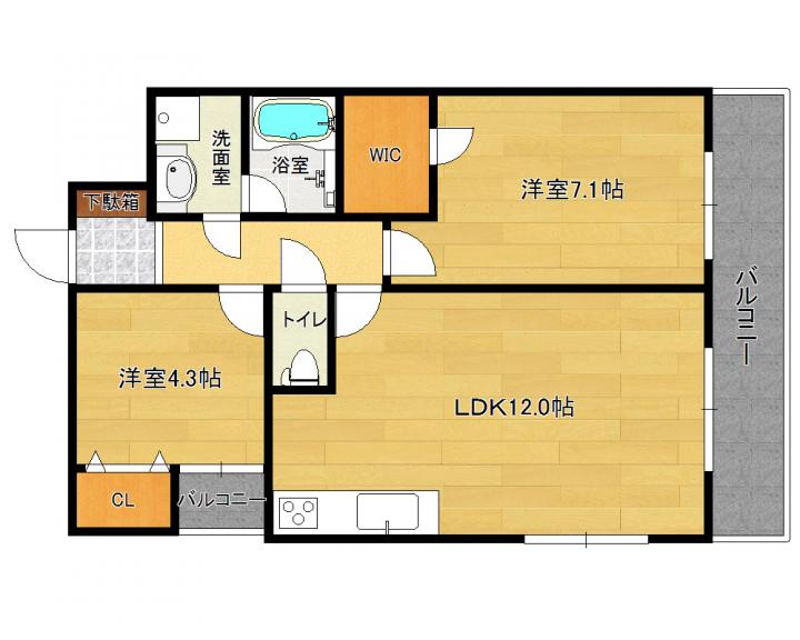 | 間取り詳細 | 洋7.1帖 洋4.3帖 LDK12.0帖 |