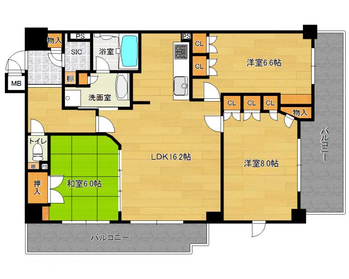 | 間取り詳細 | 和6.0帖 洋8.0帖 洋6.6帖 LDK15.9帖 |