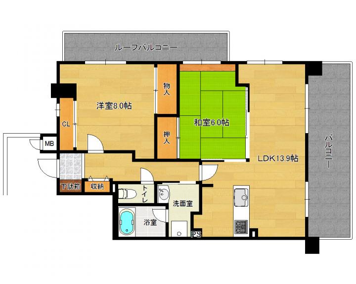 | 間取り詳細 | 和6.0帖 洋8.0帖 LDK13.9帖 |