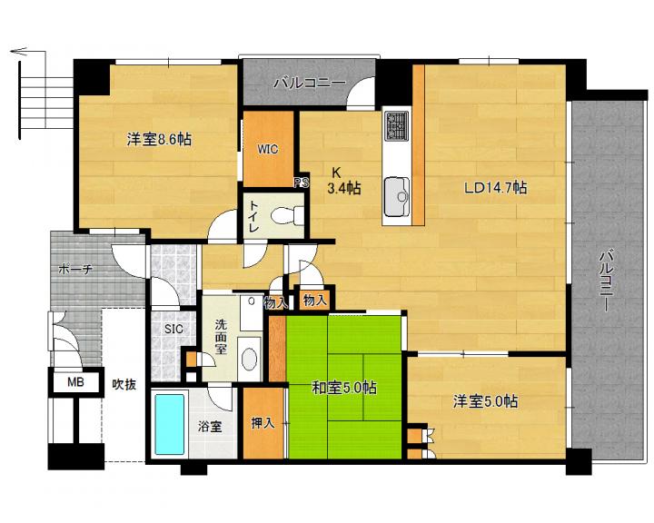 | 間取り詳細 | 和5.0帖 洋6.8帖 洋5.0帖 LDK18.1帖 |