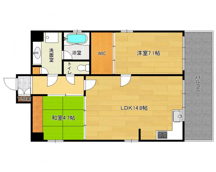 | 間取り詳細 | 和4.7帖 洋7.1帖 LDK14.8帖 |