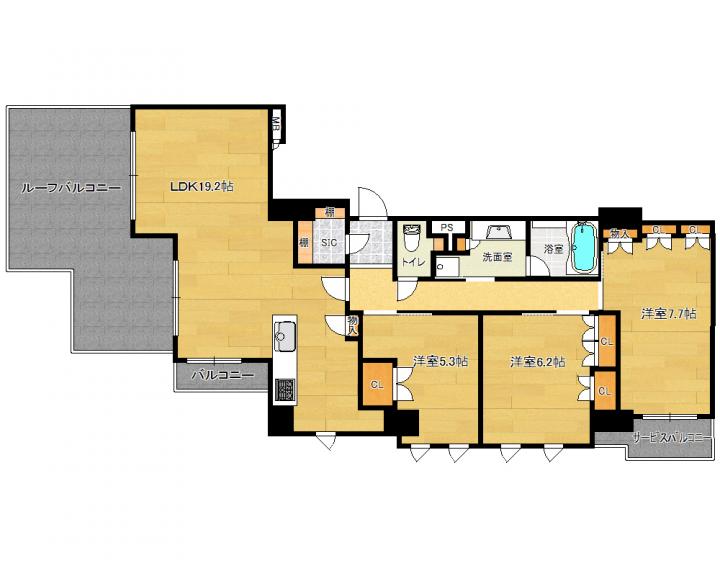 | 間取り詳細 | 洋7.7帖 洋6.2帖 洋5.3帖 LDK19.2帖 |