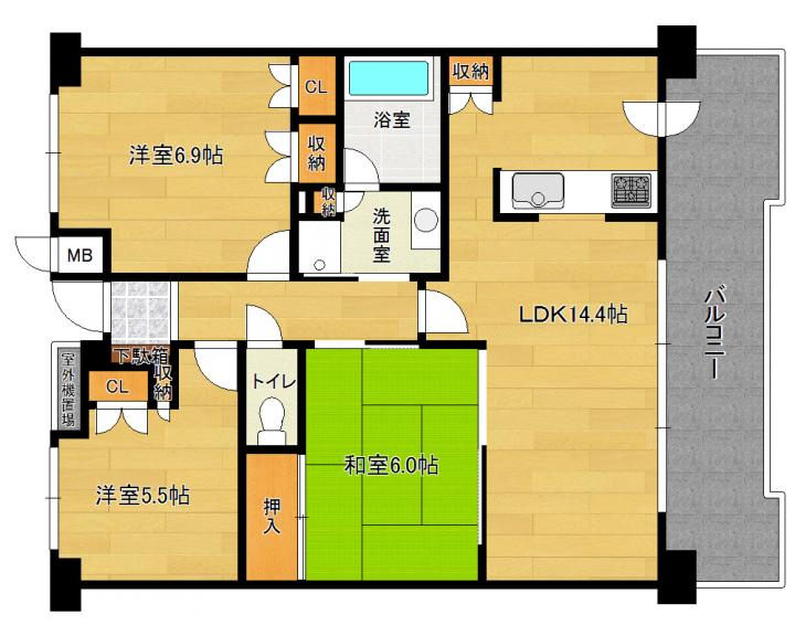 | 間取り詳細 | 和6.0帖 洋6.9帖 洋5.5帖 LDK14.4帖 |