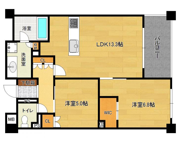 | 間取り詳細 | 洋6.8帖 洋5.0帖 LDK13.3帖 |