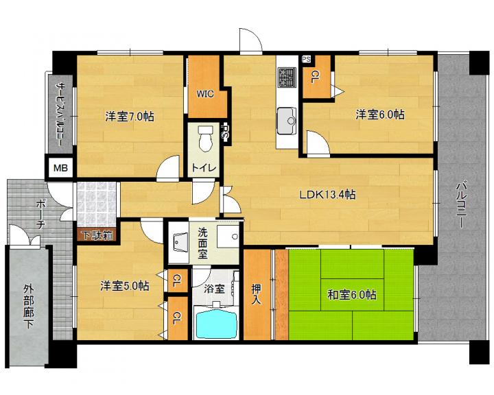 | 間取り詳細 | 和6.0帖 洋7.0帖 洋6.0帖 洋5.0帖 LDK13.4帖 |