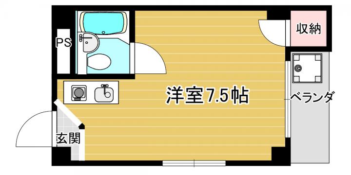 | 間取り詳細 | 洋室7.5帖+K |